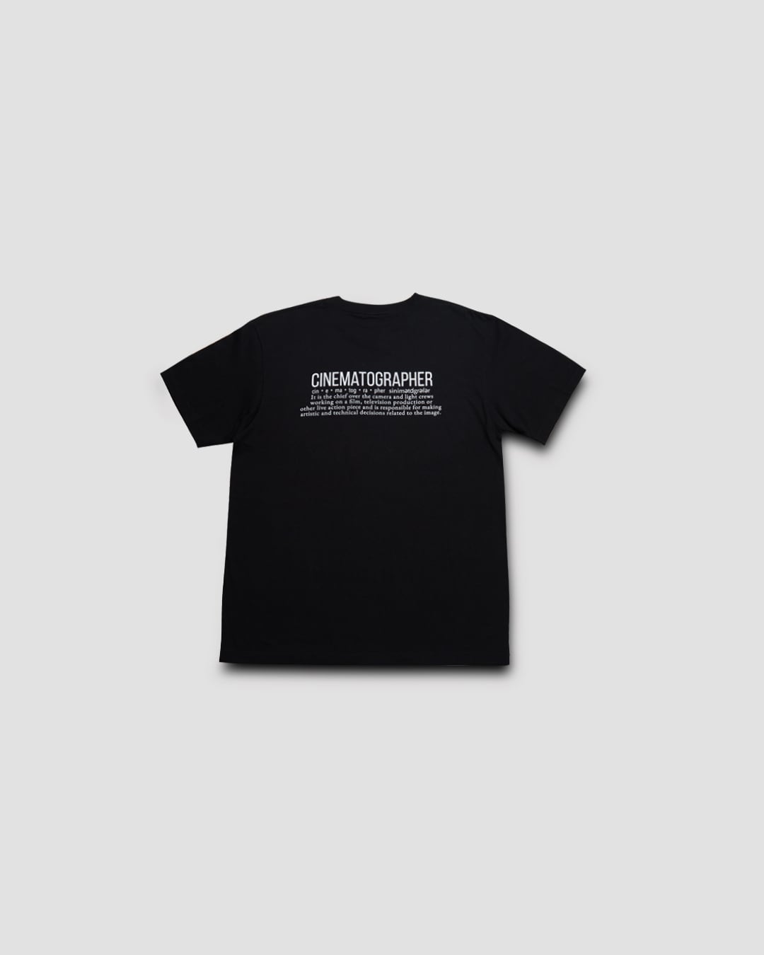 前後両面にCINEMATOGRAPHERの文字プリントが入ったTシャツ。